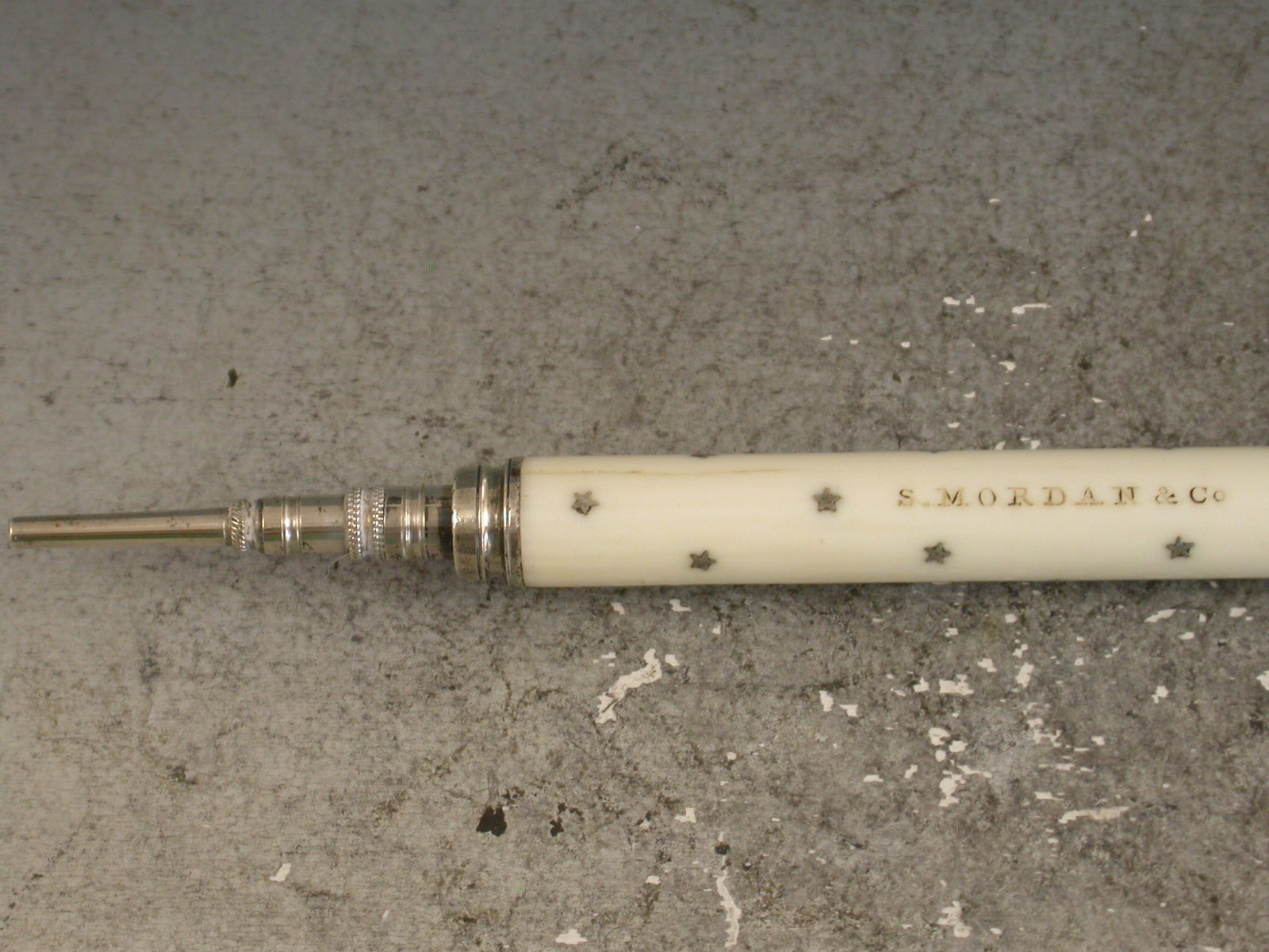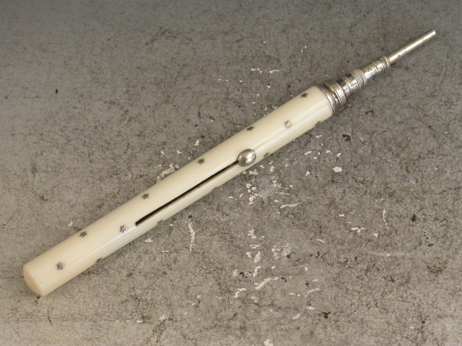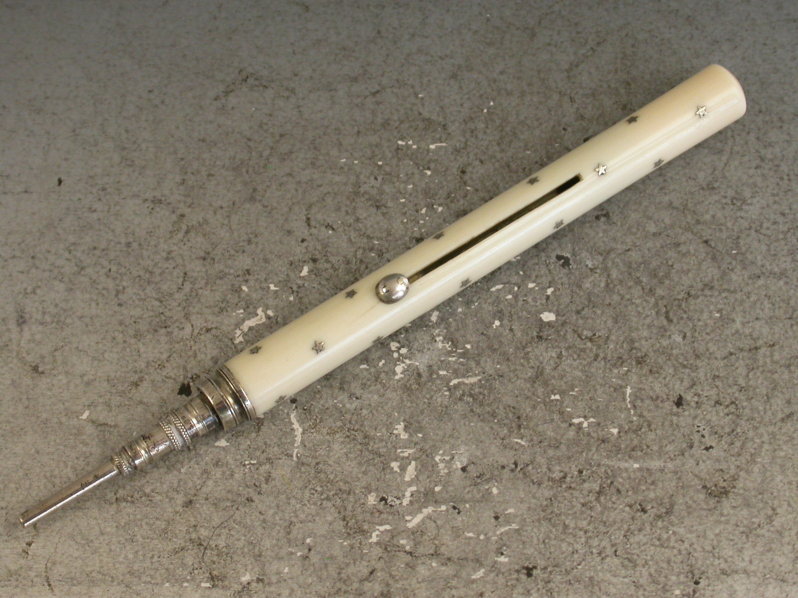 Victorian Silver Pique Stars & Ivory Sliding Propelling Pencil