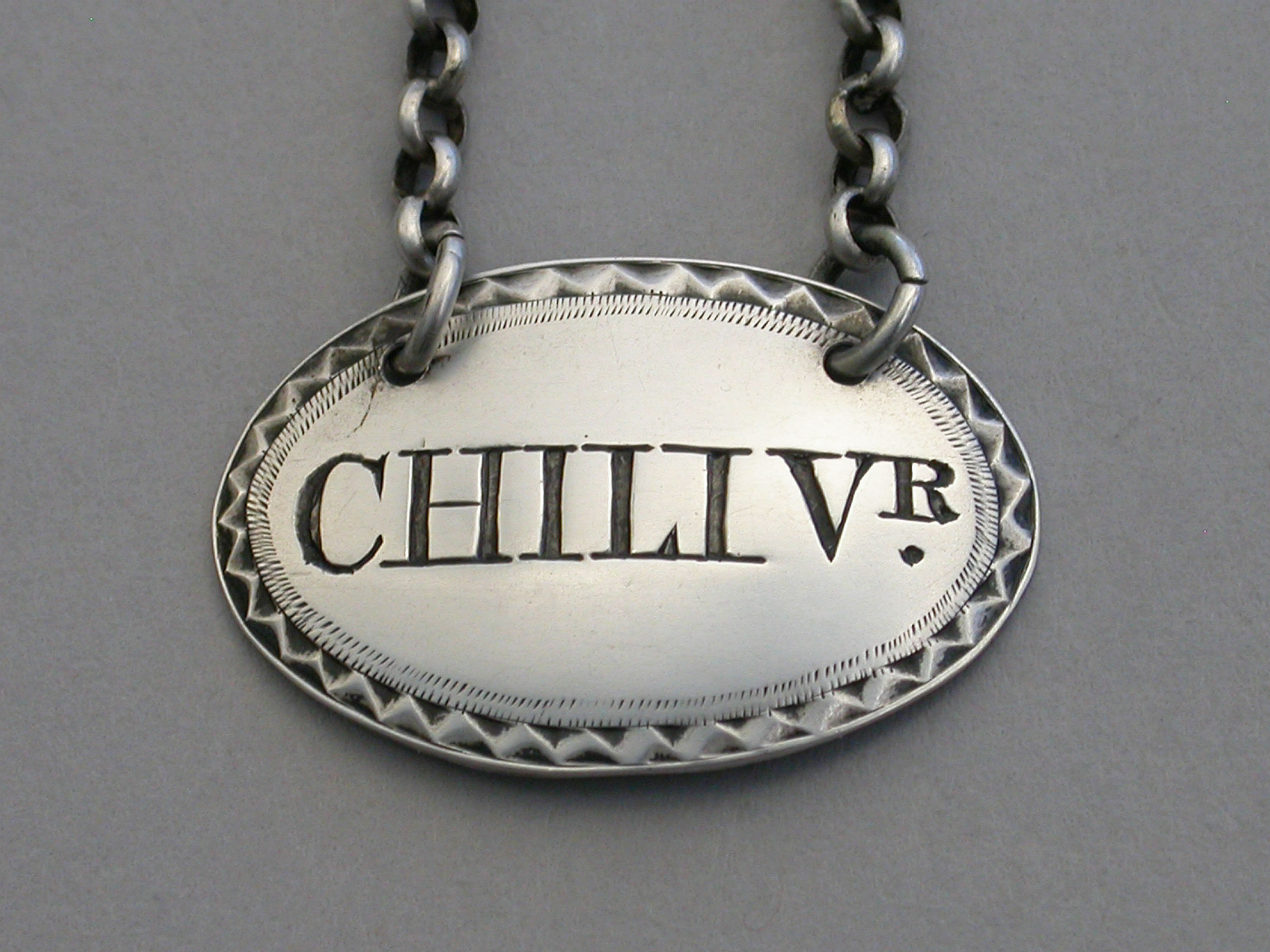 Victorian Silver Sauce Label 'Chili Vr.'