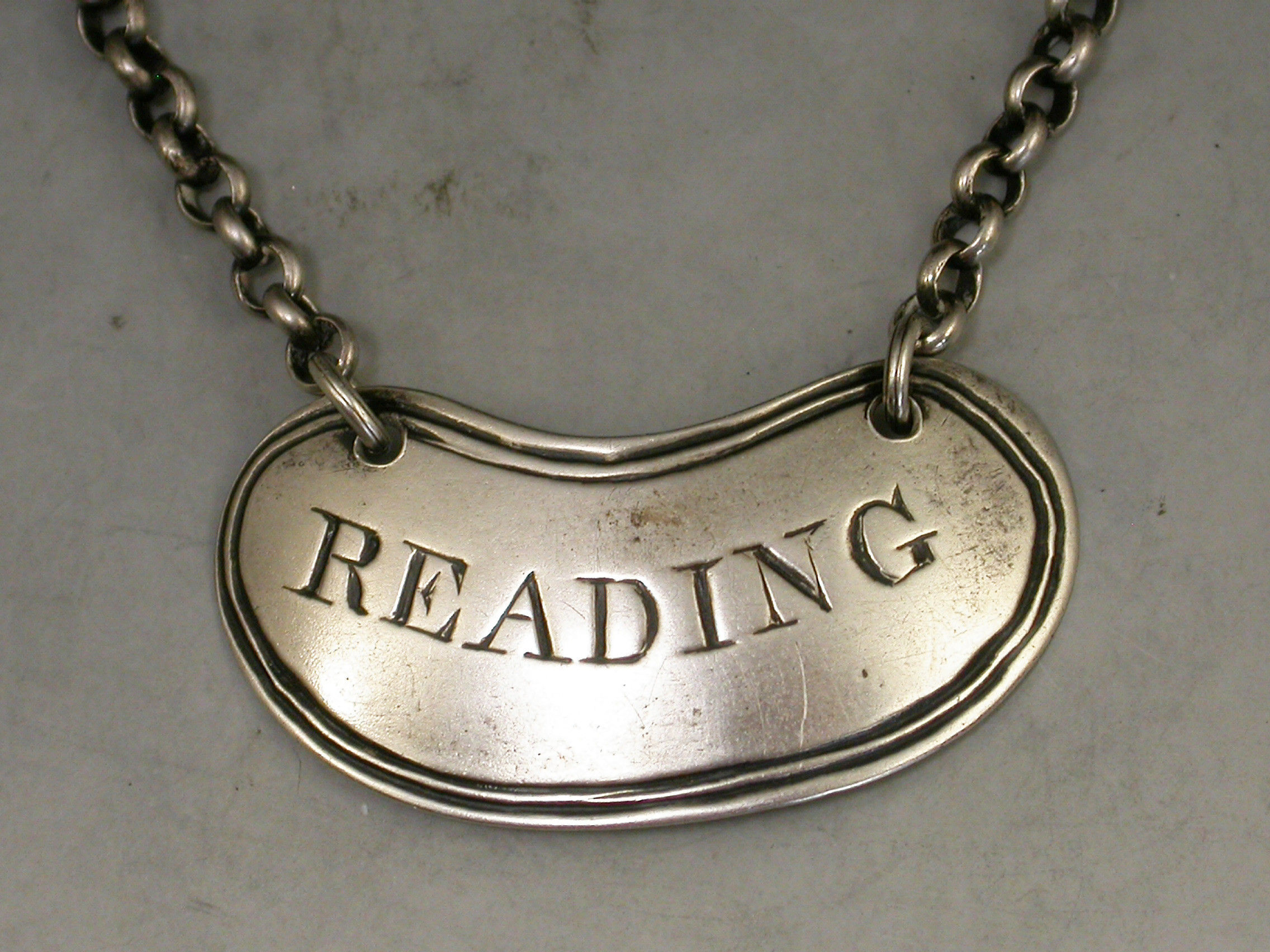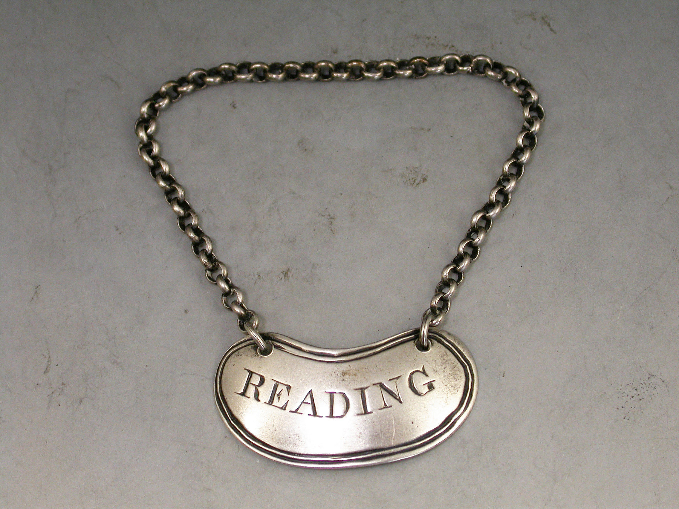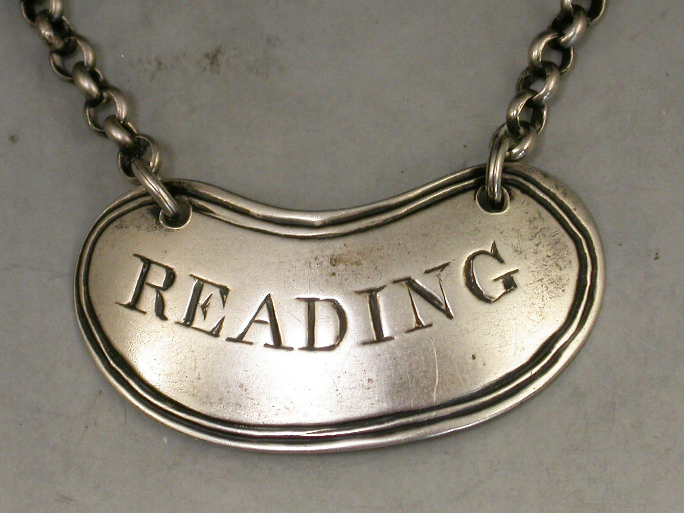 Victorian Silver Sauce Label 'Reading'