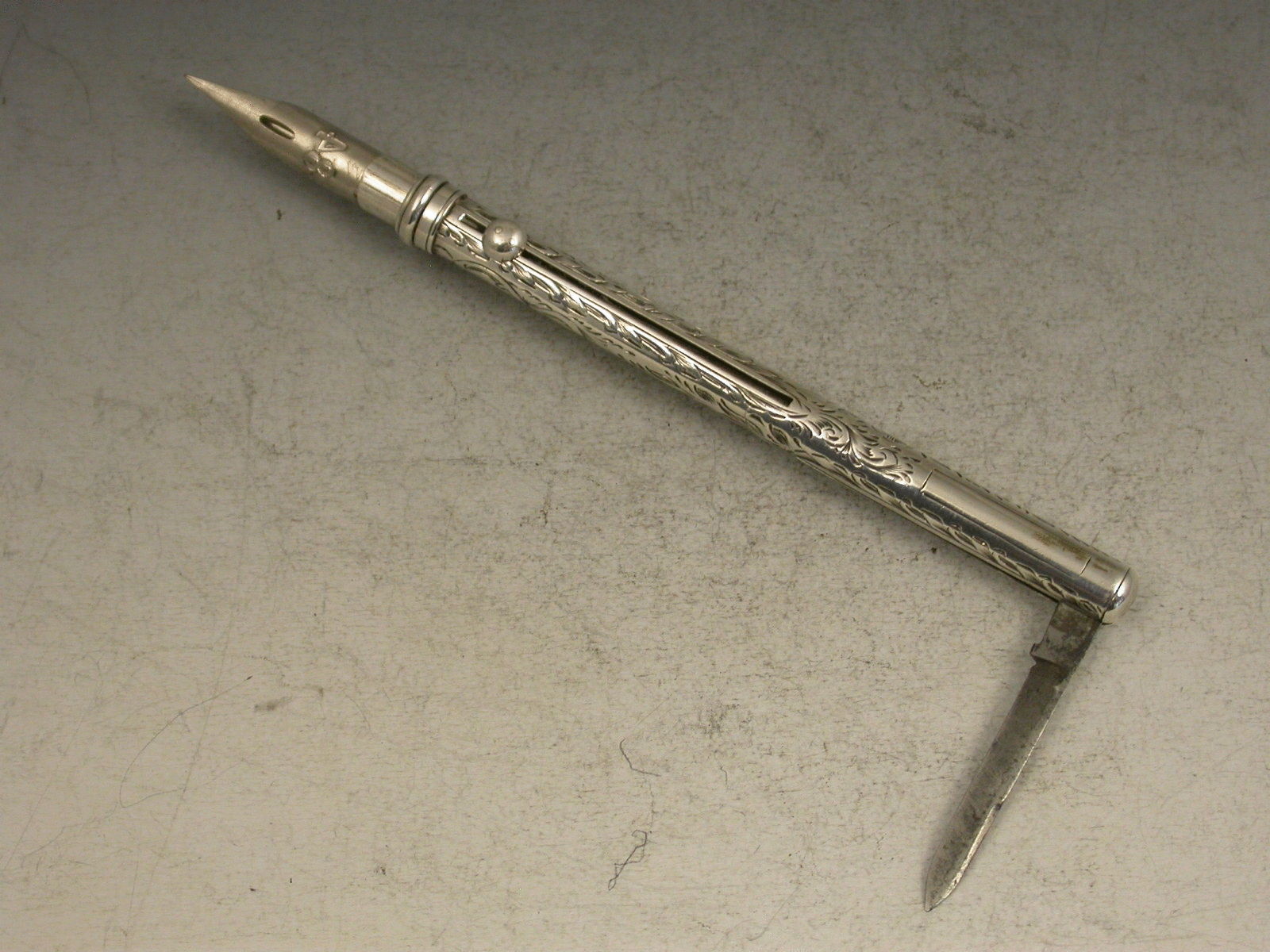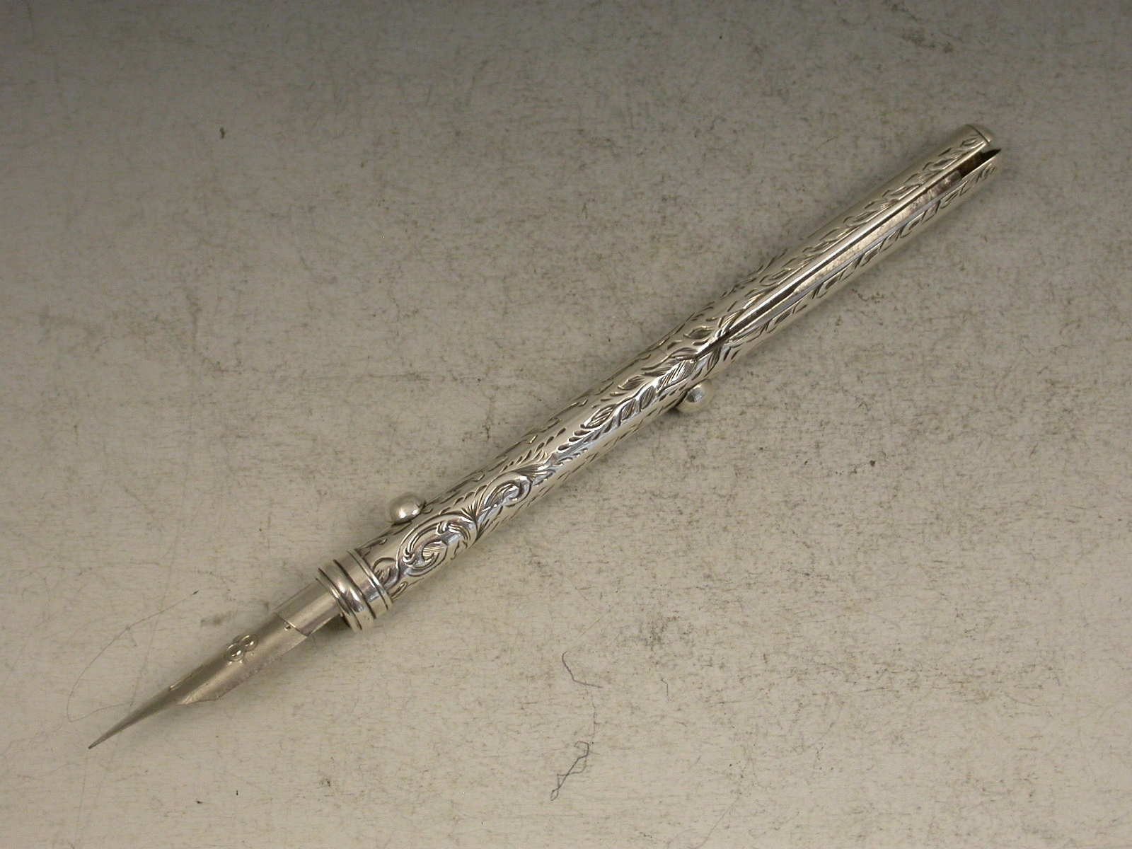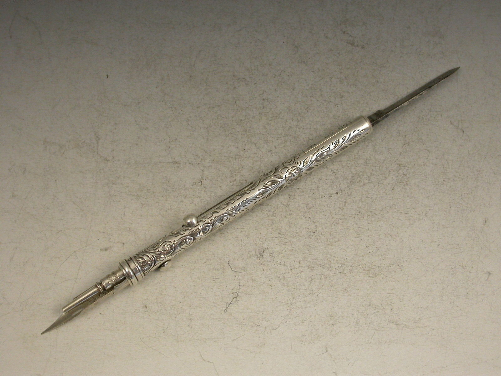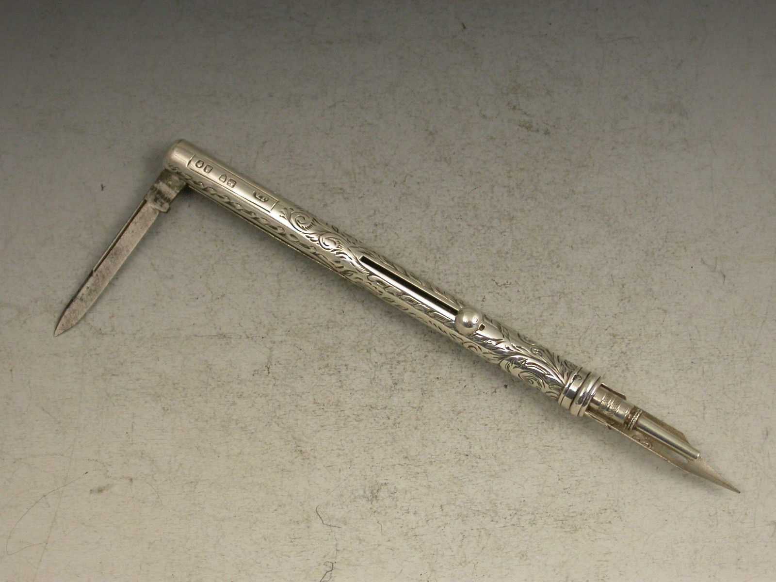Victorian Silver Sliding Pencil / Dip Pen / Pen Knife Combined