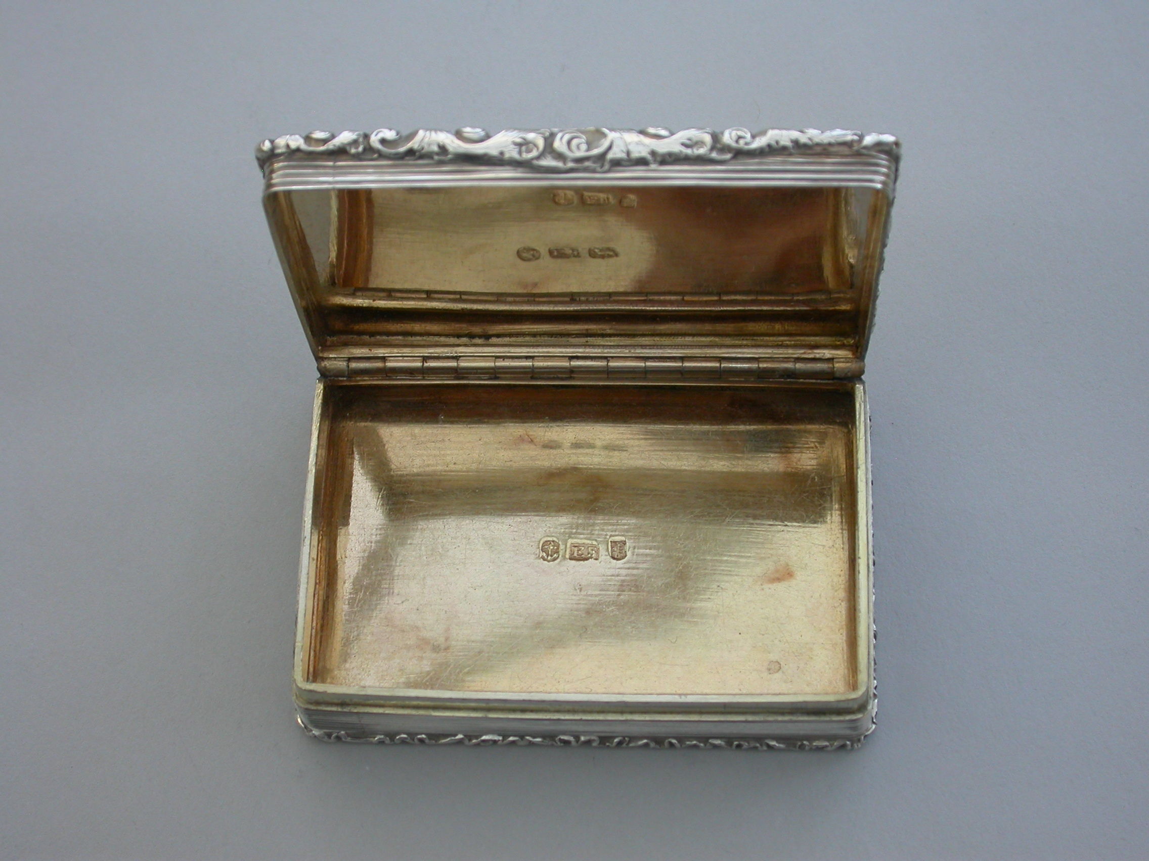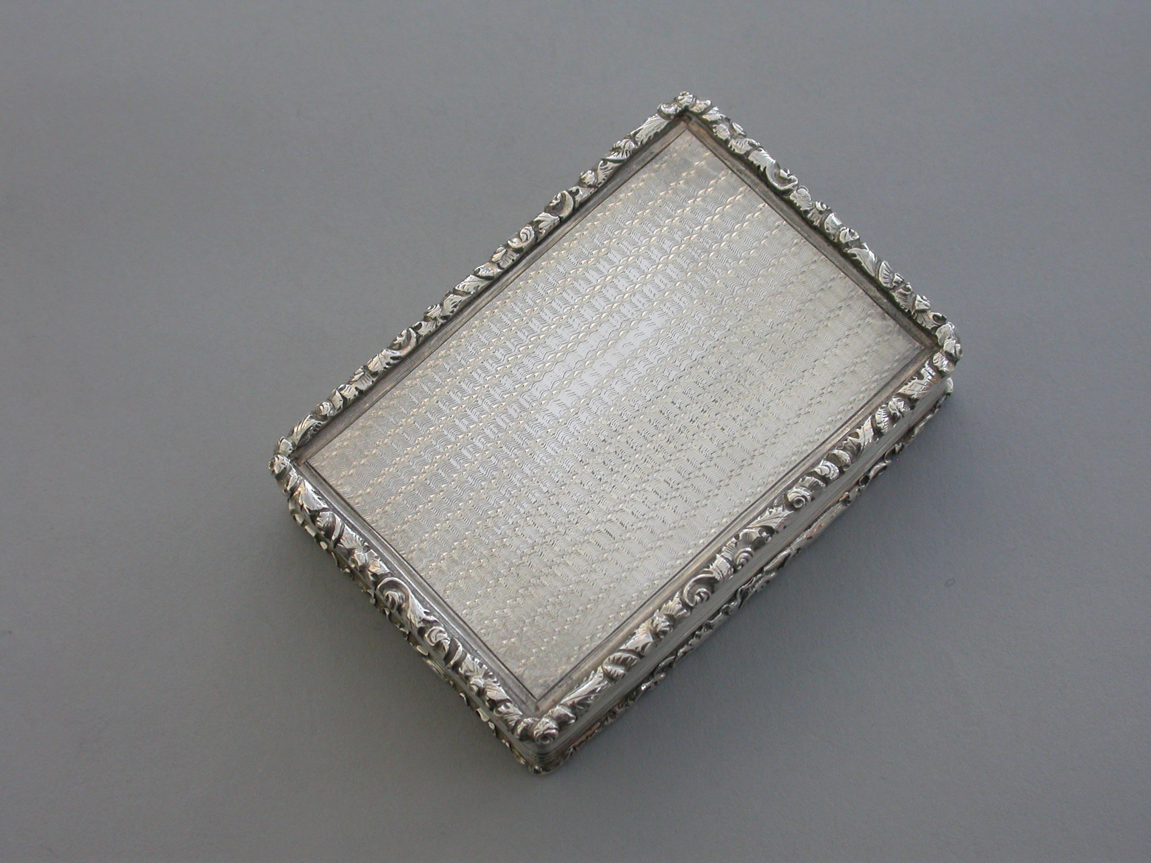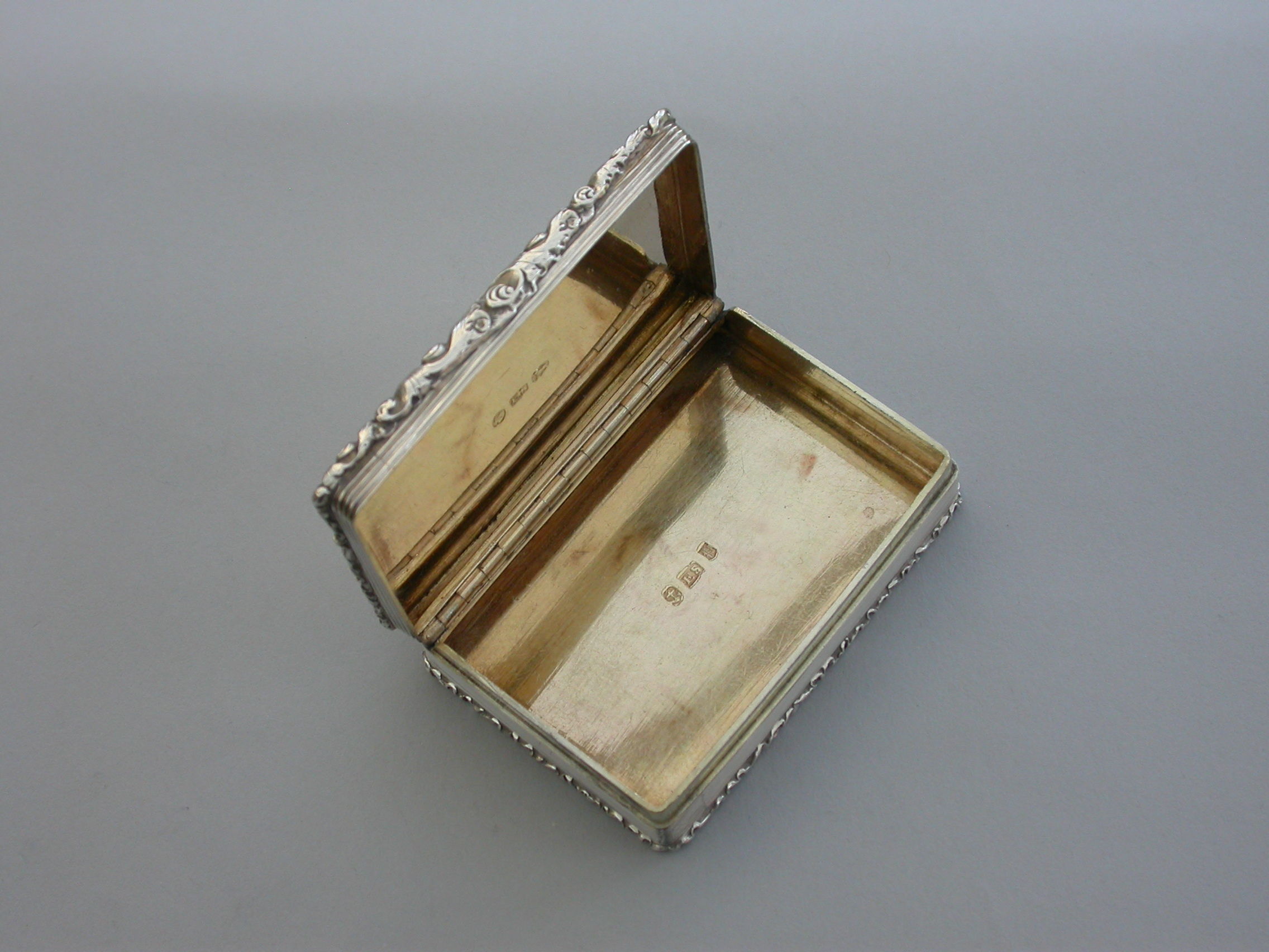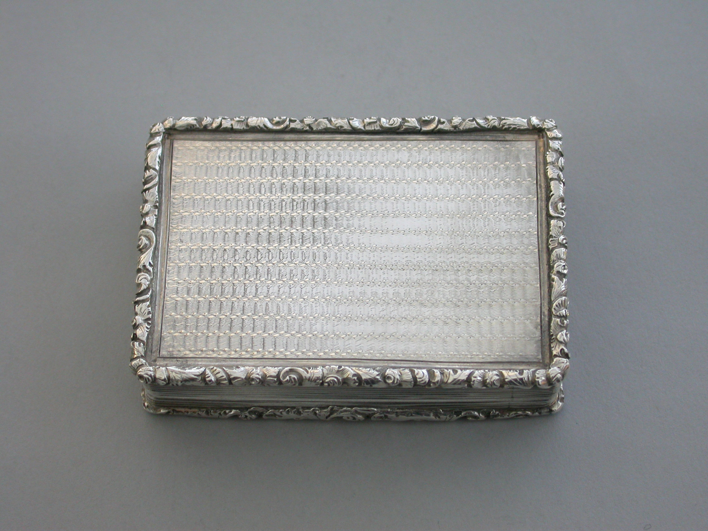 An interesting early Victorian silver Snuff Box of rectangular form with all-over engine turned decoration and raised chased floral borders, the lid with shield shaped cartouche engraved with presentation inscription relating to Tunbridge Wells Horse Races.