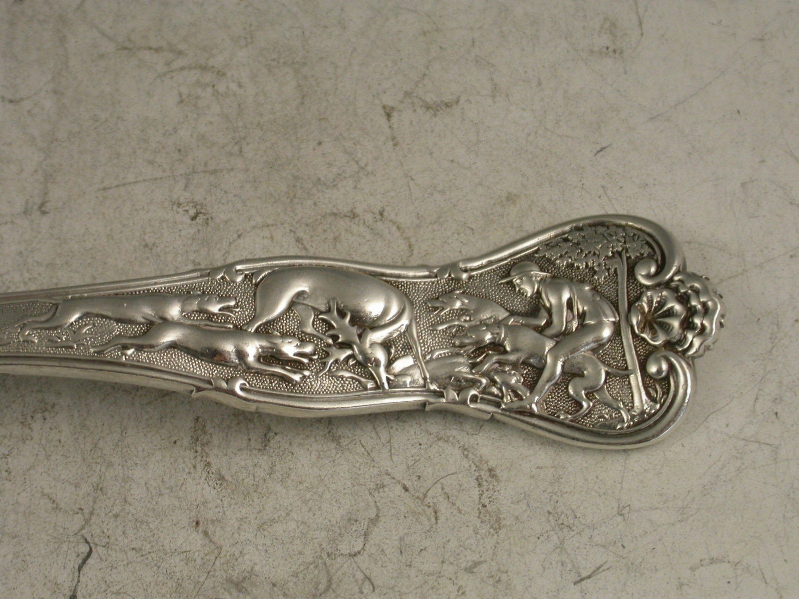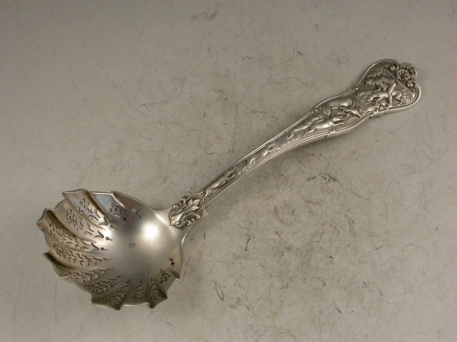 Victorian Silver Stag Hunt Pattern Sugar Sifter Ladle