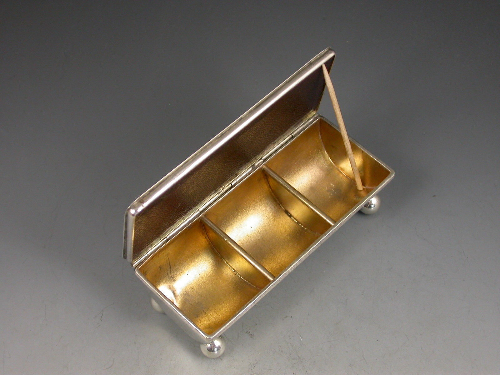 Victorian Silver Triple Compartment Trough Shaped Stamp Box