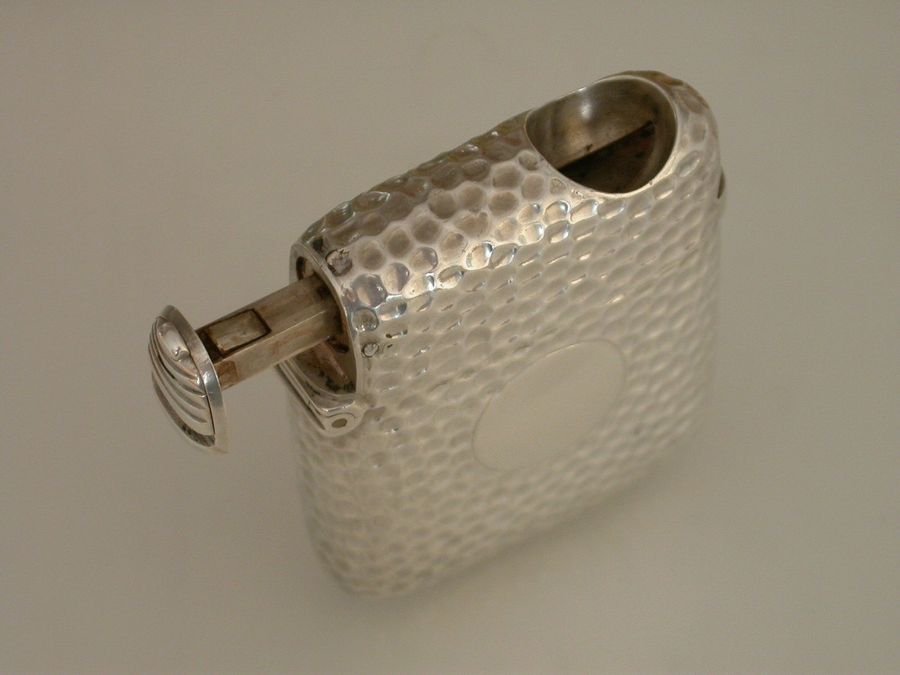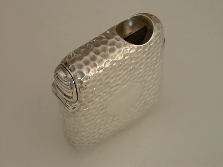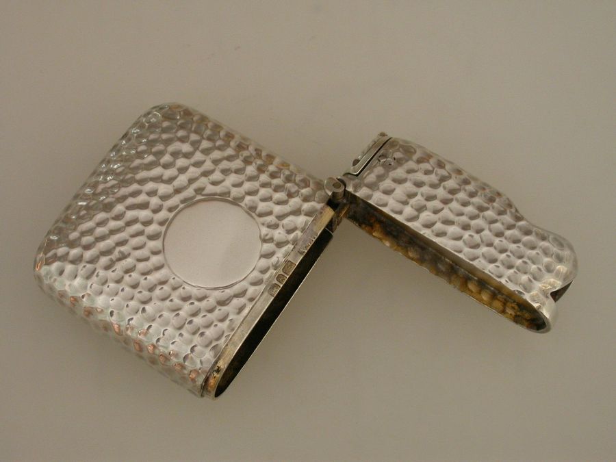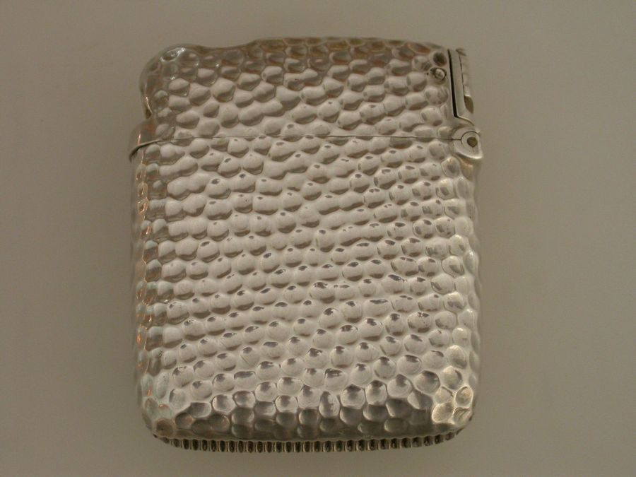 A good Victorian silver 'Unity Patent' Vesta Case combined with a sprung Cigar Cutter to the lid, the body with hammered immitation snake skin finish and central circular vacant cartouche.