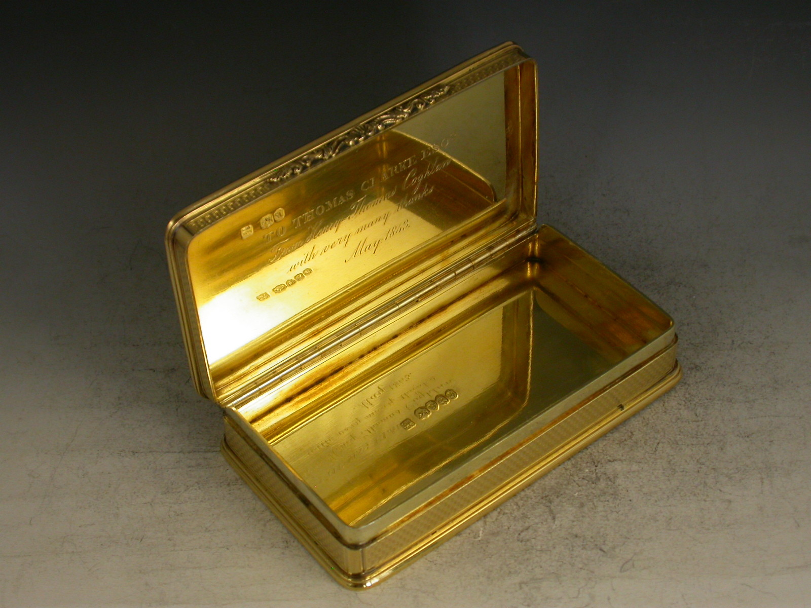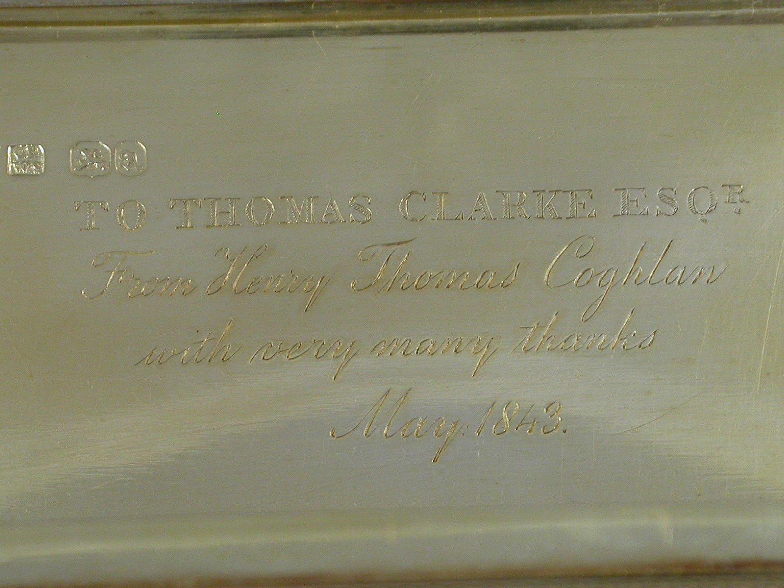 By Rawlings & Summers, London, 1836. Engraved with presentation inscription to the interior lid dated 1843.