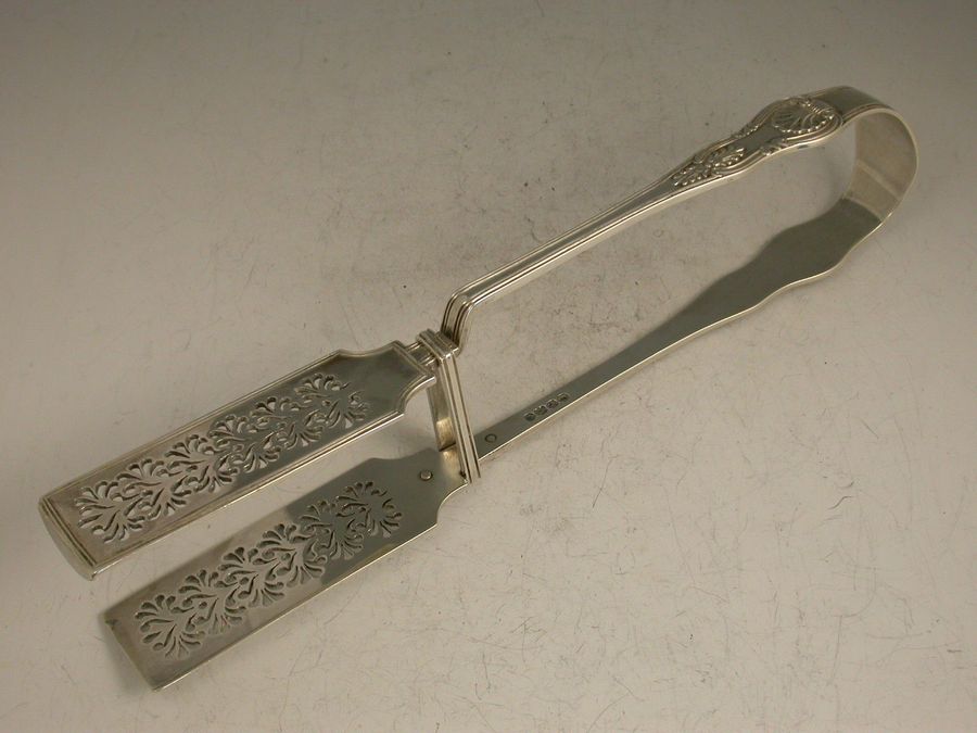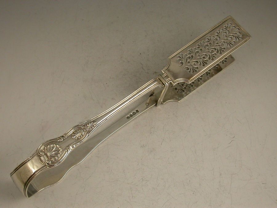 William IV Antique Silver Kings Pattern Asparagus Tongs