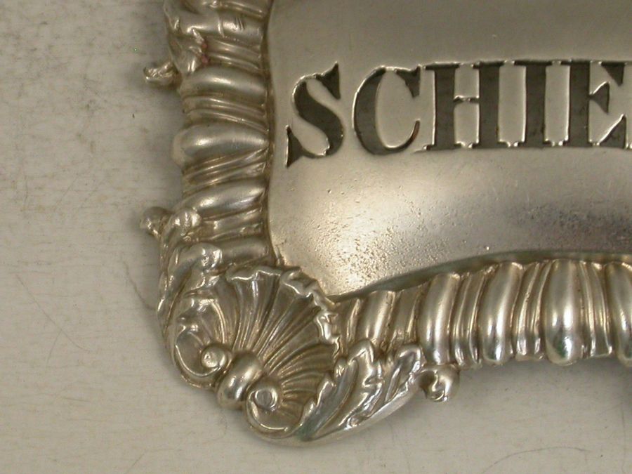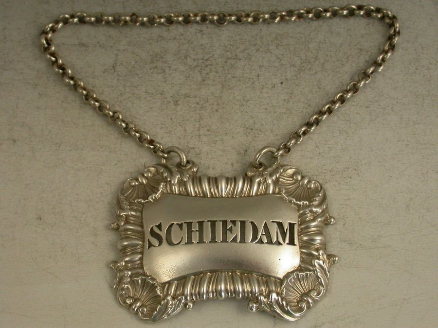 William IV Antique Silver Wine Label 'Schiedam'