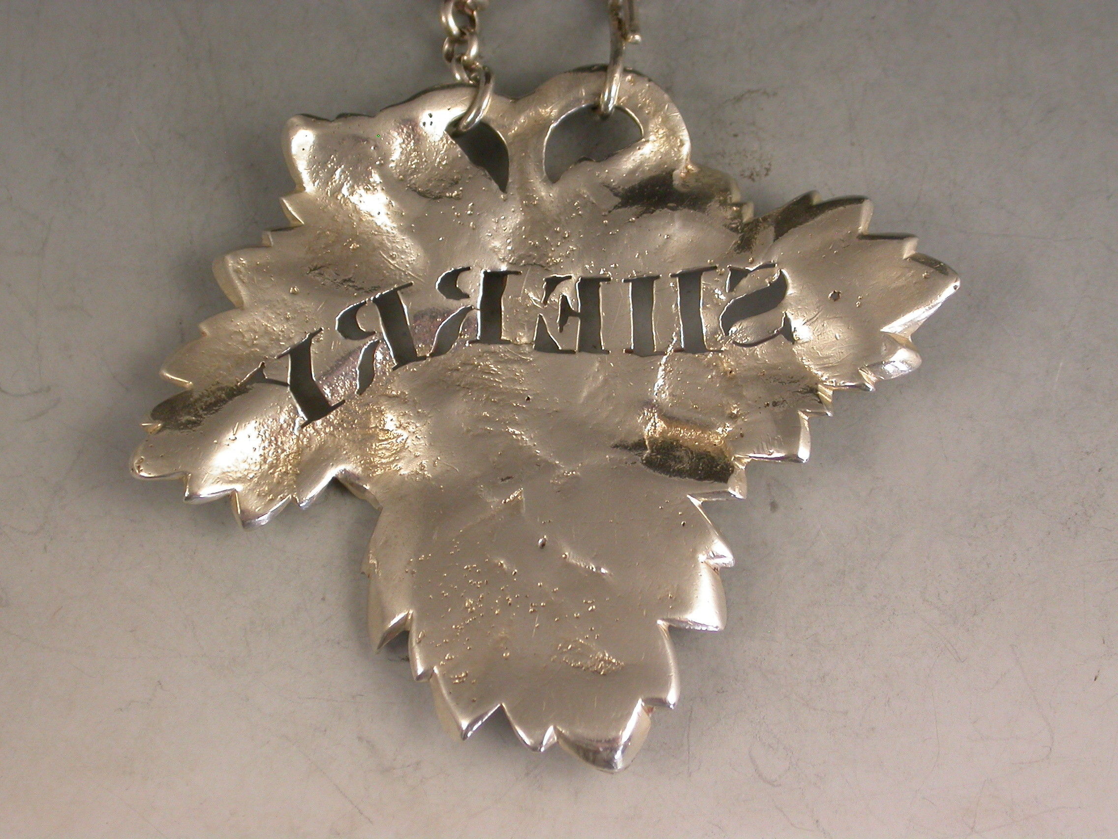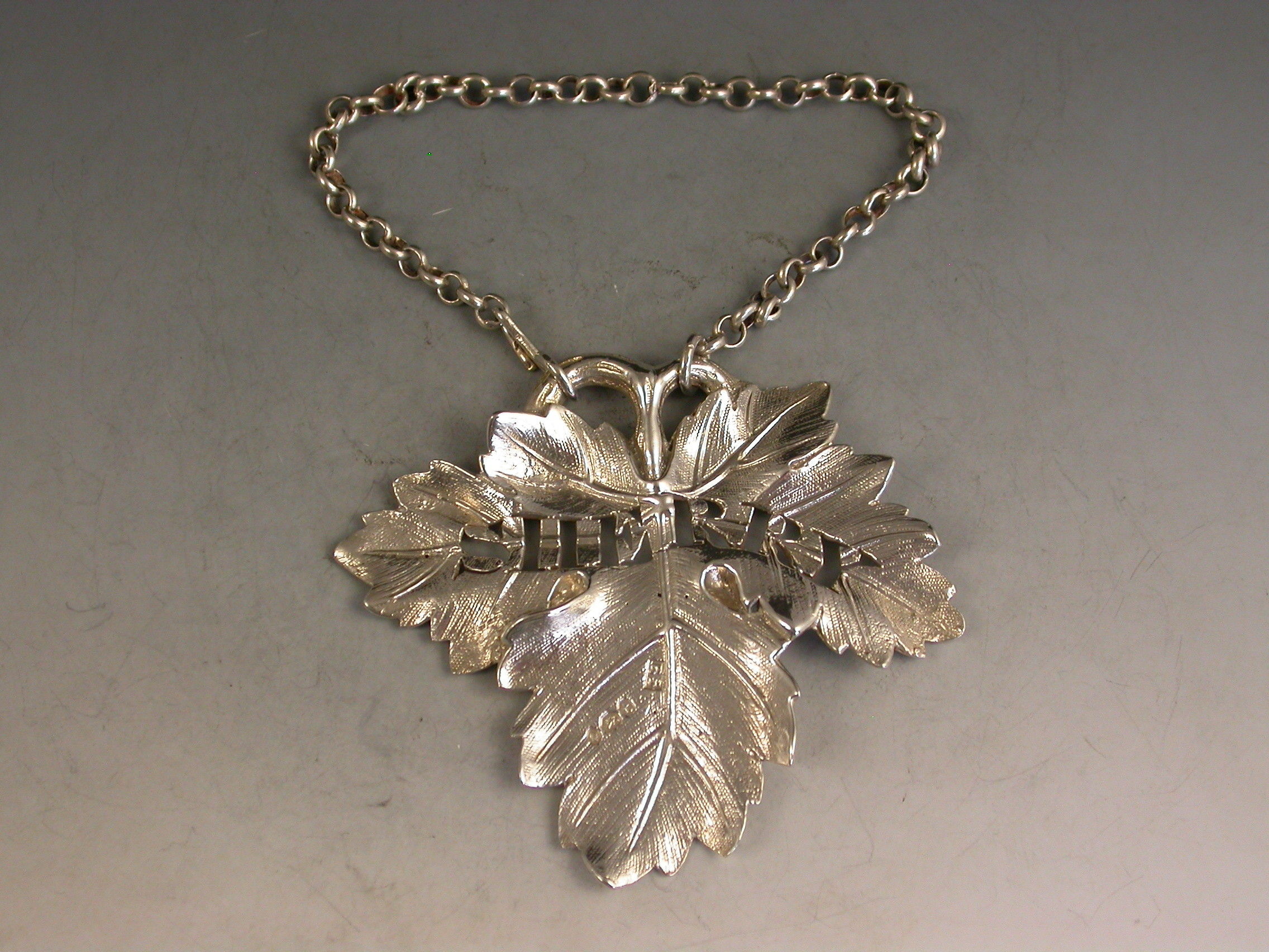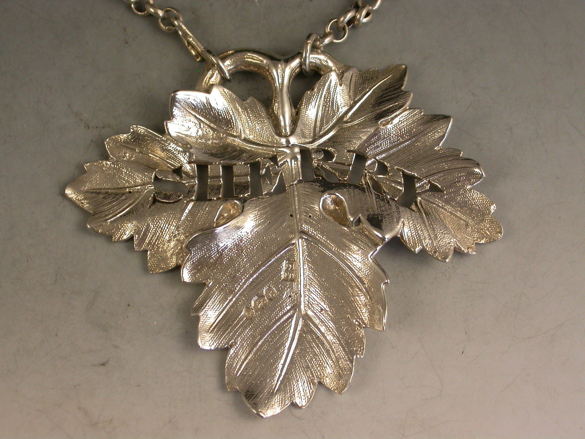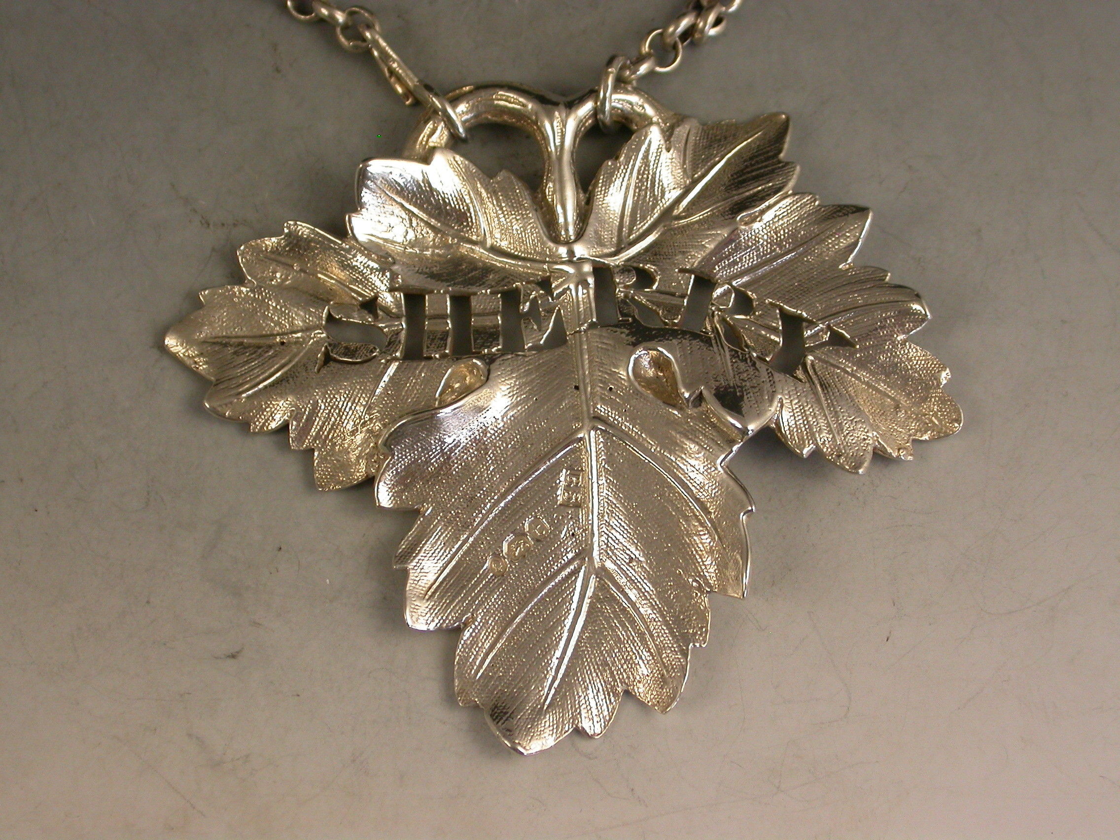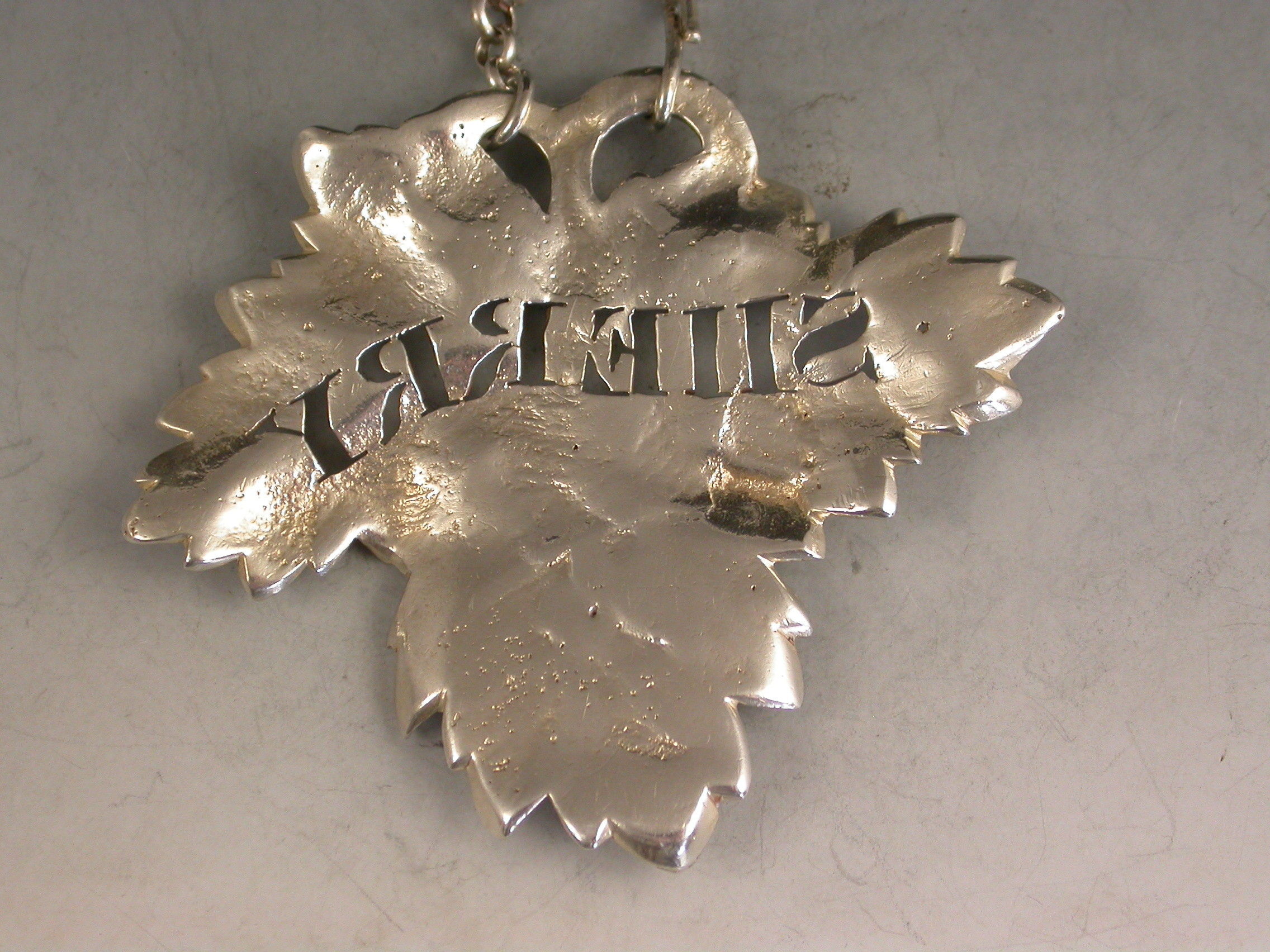 William IV Cast Silver Vine Leaf Wine Label 'Sherry'