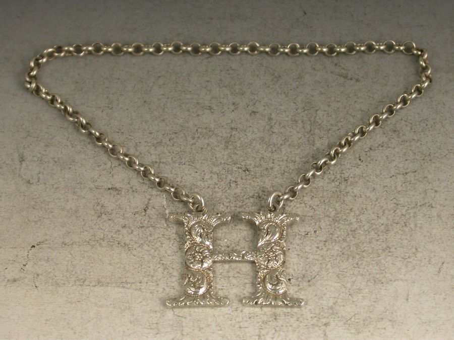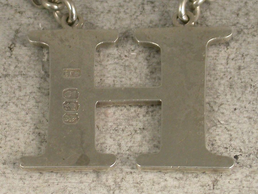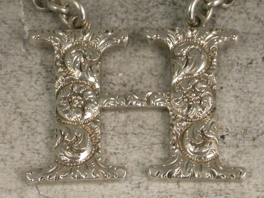 A William IV Irish cast silver Wine Label made in the form of a capital letter 'H' (for Hollands) with chased foliate scroll decoration.