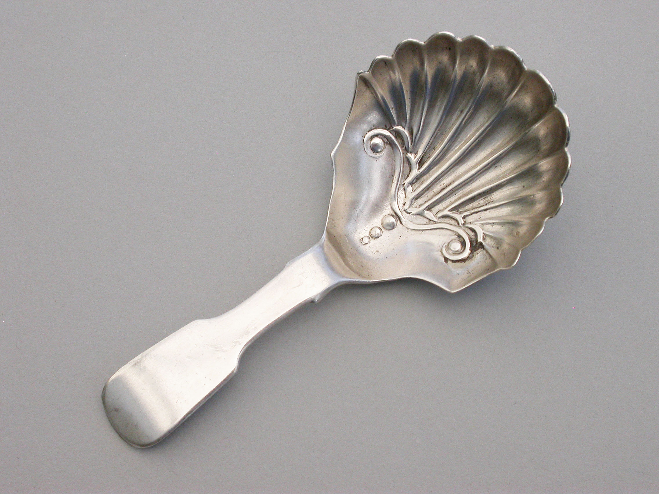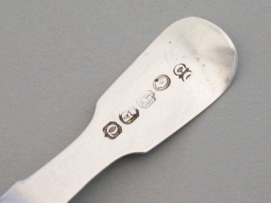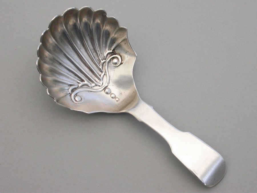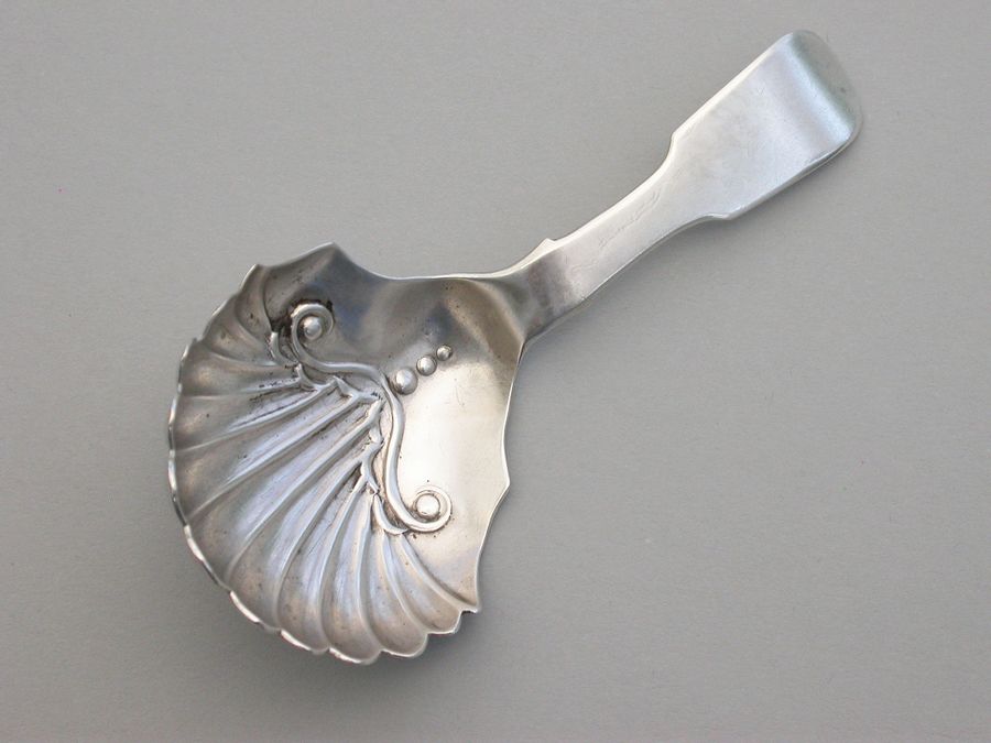 A William IV Irish silver Caddy Spoon with part fluted deep shell bowl and plain fiddle pattern handle