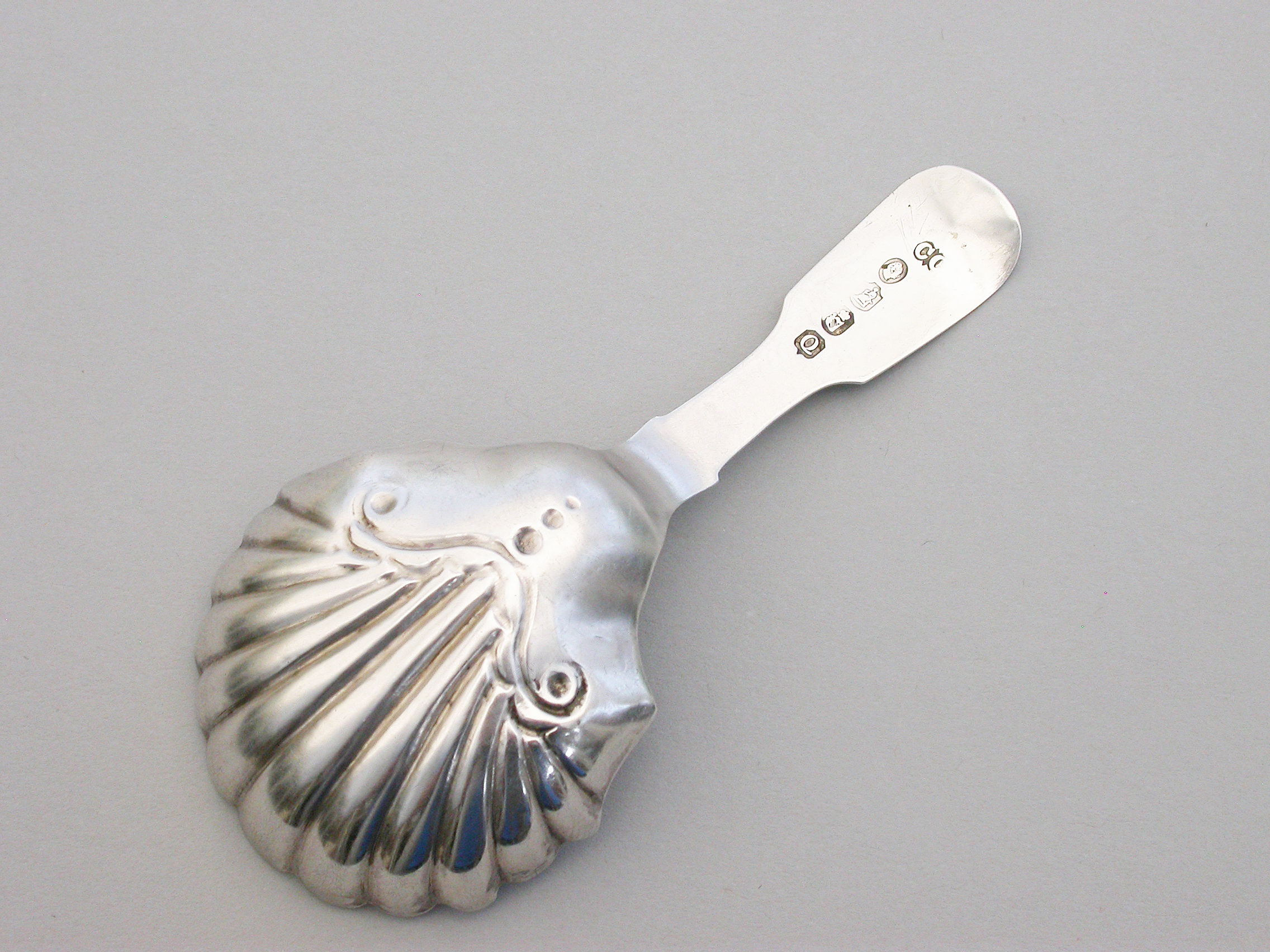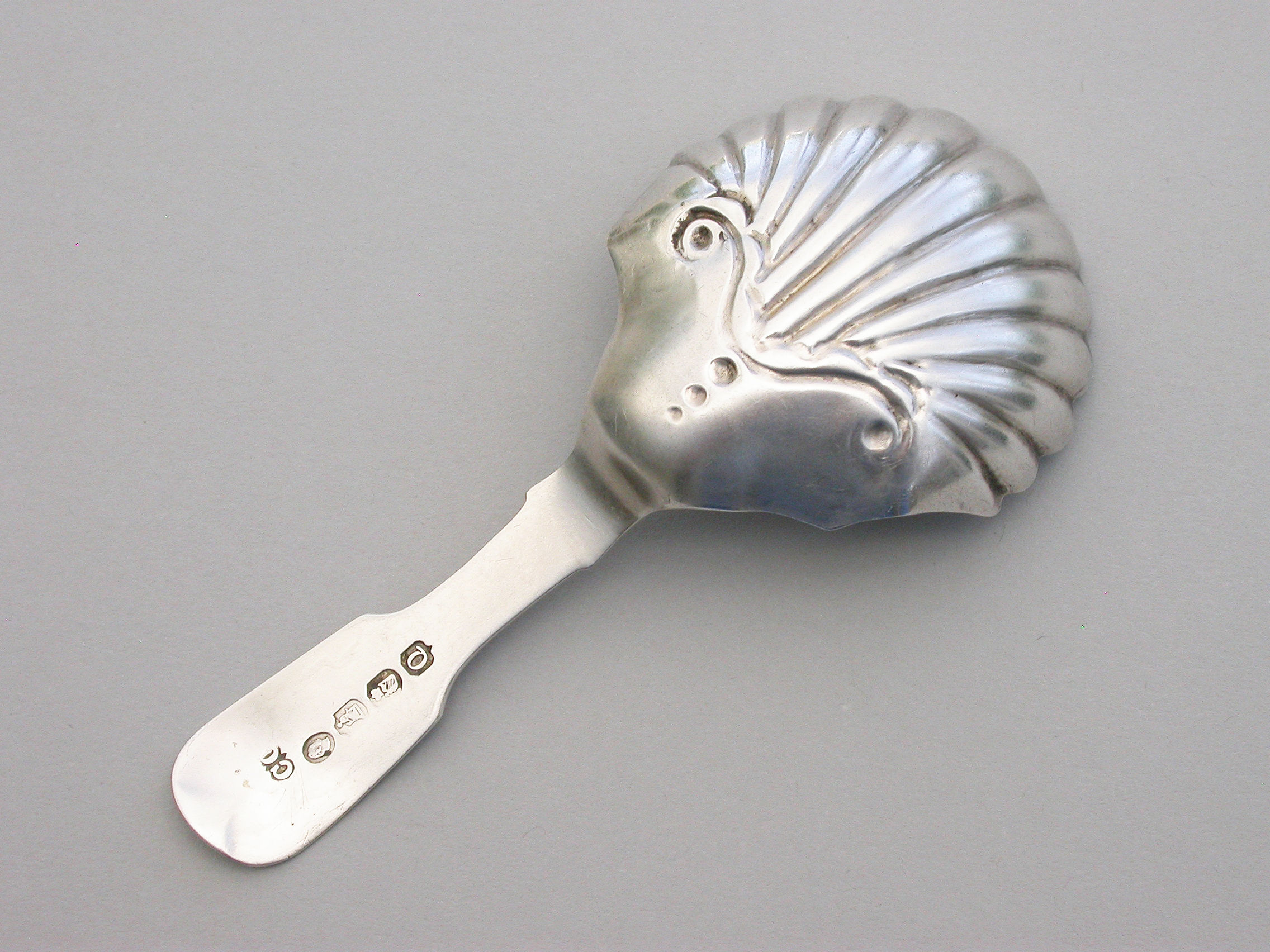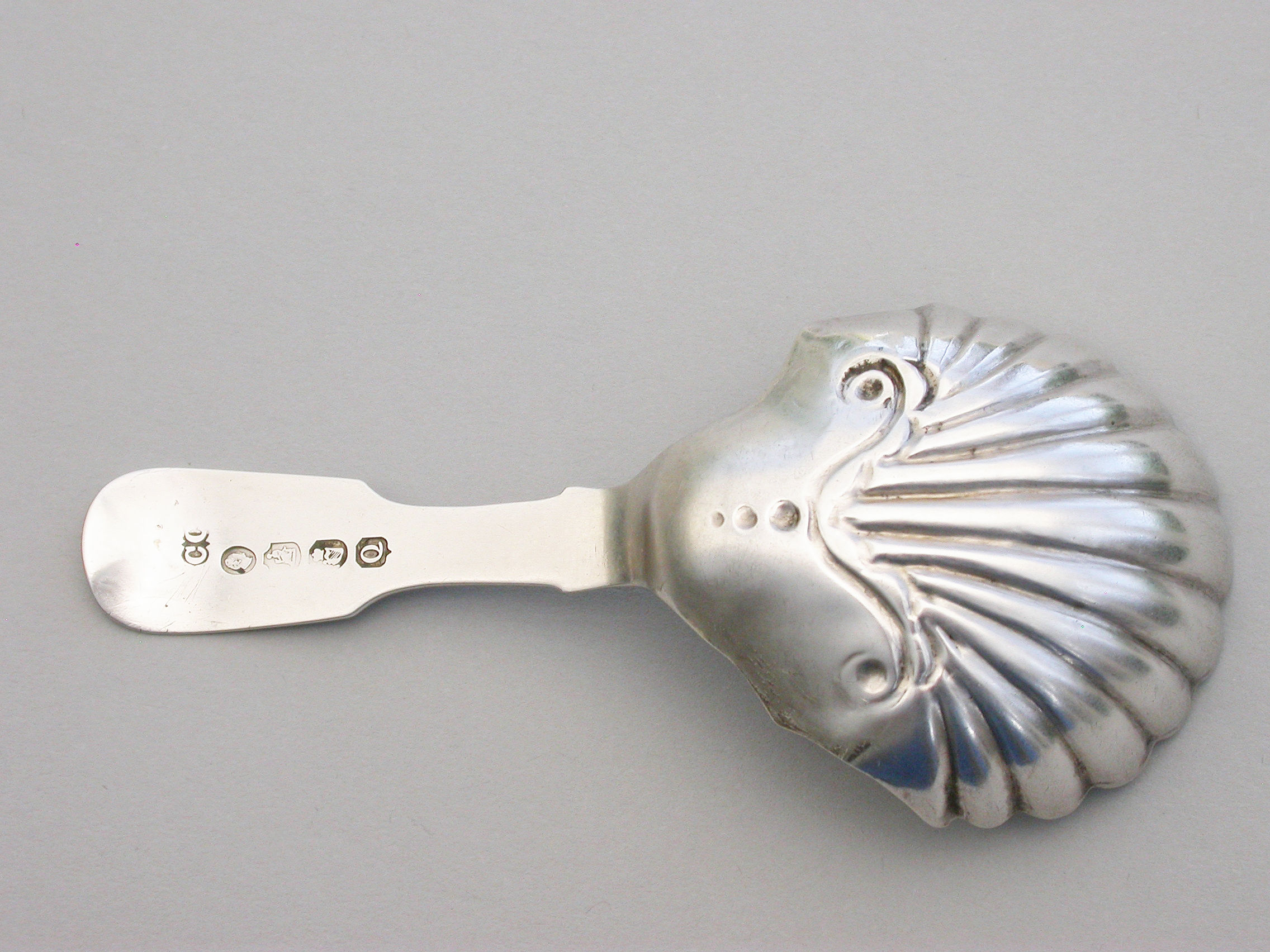 A William IV Irish silver Caddy Spoon with part fluted deep shell bowl and plain fiddle pattern handle