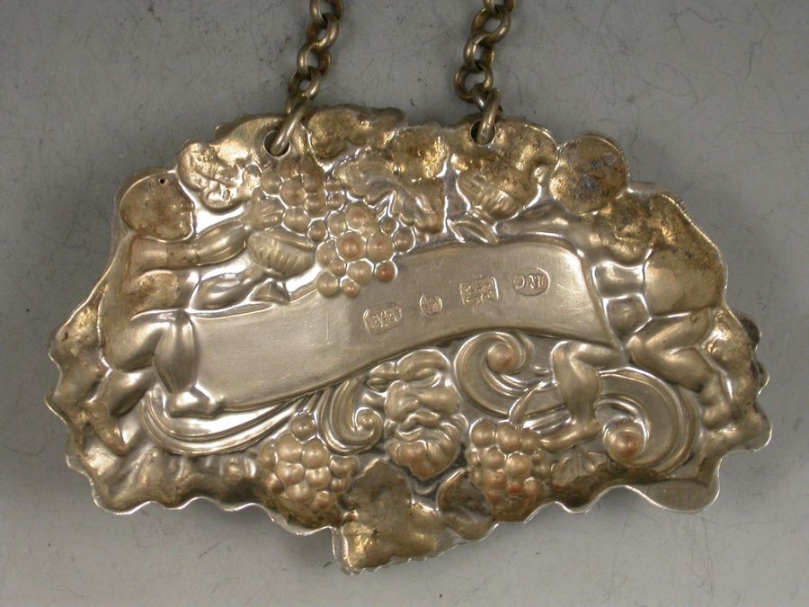 William IV Provincial Silver Two Putti with Jug & Bottle Wine Label 'Port'