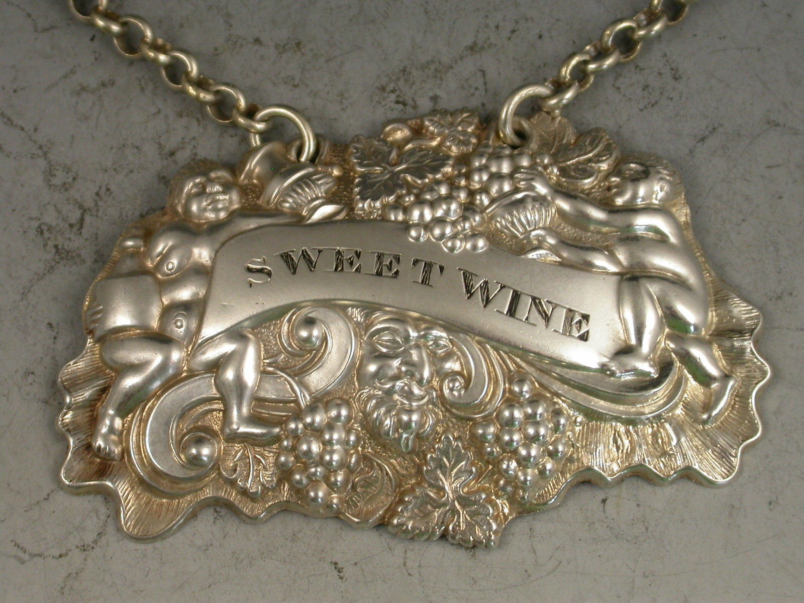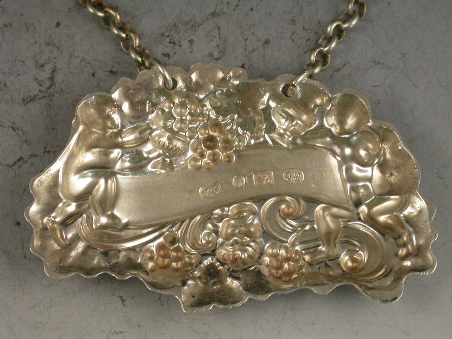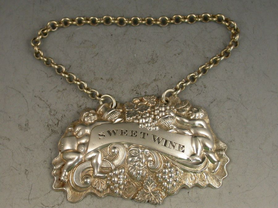 William IV Provincial Silver 'Two Putti with Jug & Bottle' Wine Label 'Sweet Wine'