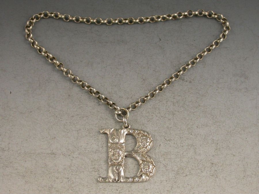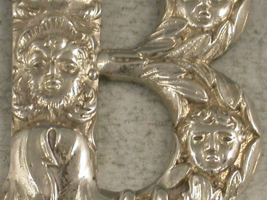 A William IV cast silver Wine Label in the form of an initial letter ‘B’ (probably for Brandy or possibly Burgundy), chased with foliage and Bacchanalian masks.