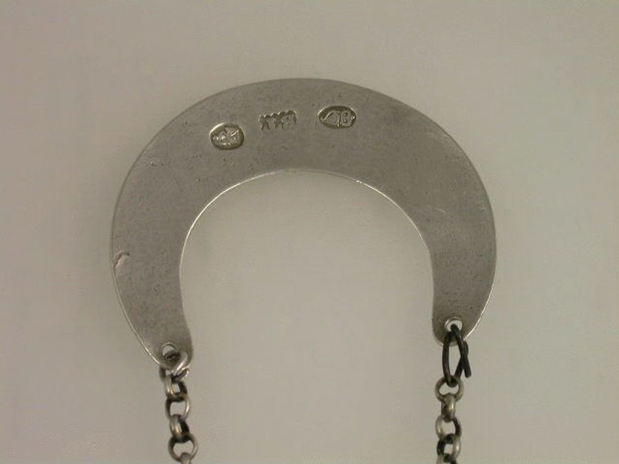 A good George III Irish silver Wine Label of rounded flat crescent form with bright cut engraved border, incised for CLARET.